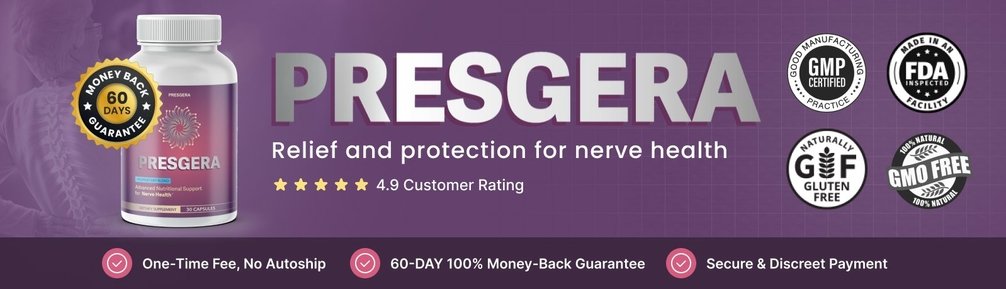 If the burning, tingling, and shocks have turned simple moments into battles, here’s the most honest way to look at Presgera: it’s a low‑effort, high‑upside try. One capsule a day. Natural actives aimed at the real source of nerve pain. Manufactured in the US. And a plain 60‑day guarantee—if your body doesn’t respond, you’re not stuck. What makes this worth your attention is simple: people aren’t just “coping better”—they’re reporting easier mornings, calmer legs and feet, steadier hands, and the quiet relief of getting through a day without flinching. If all you want is to see whether your pain can finally ease without stacking more meds or gambling on surgery, this is the kind of decision that feels smart now and even smarter later. Keep reading—this review goes deep so you can decide with clarity and calm.